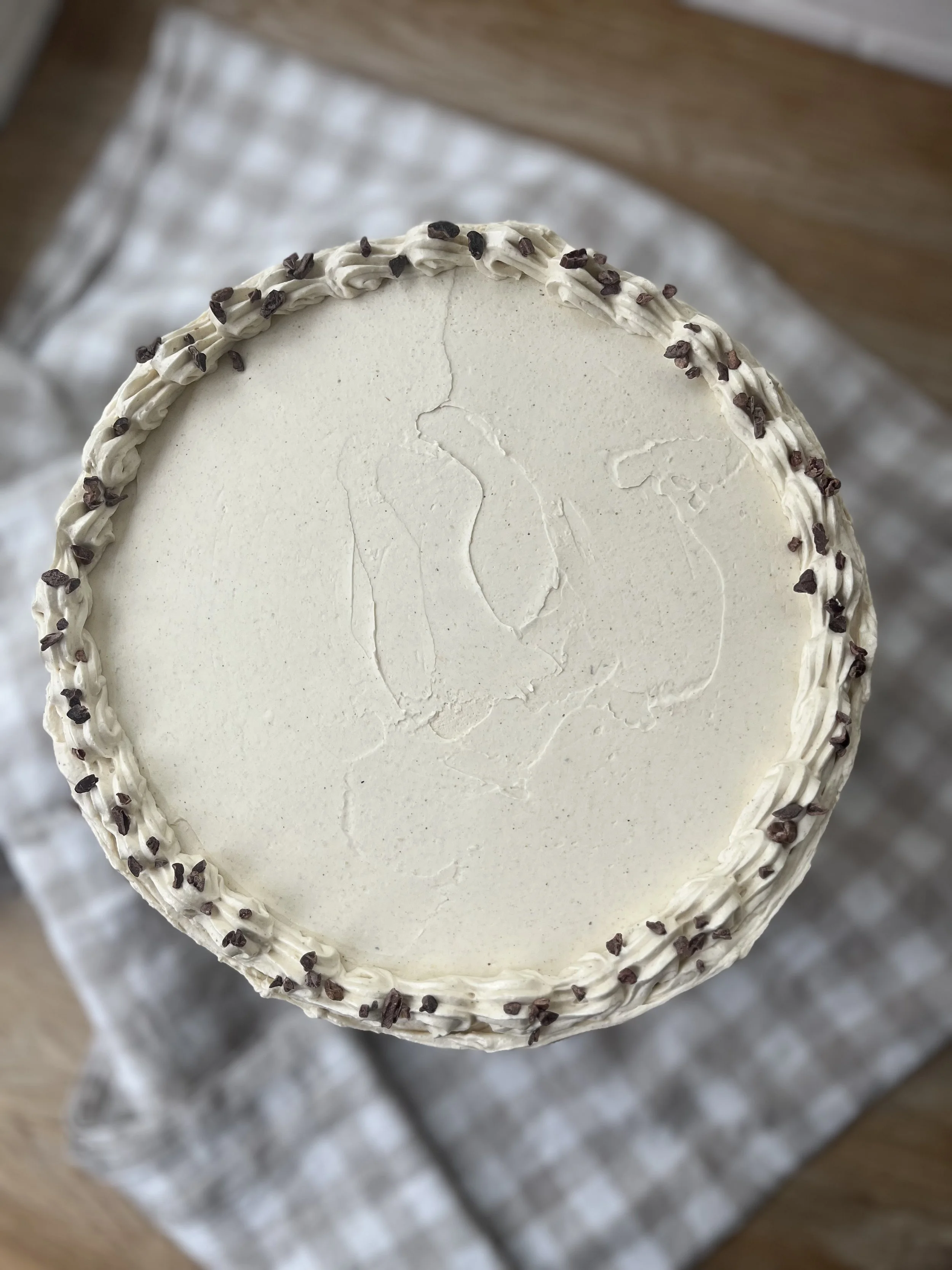 Vanilla sponge soaked in a classic coffee/brandy mix, filled with whipped mascarpone cream, and coated in mocha buttercream.